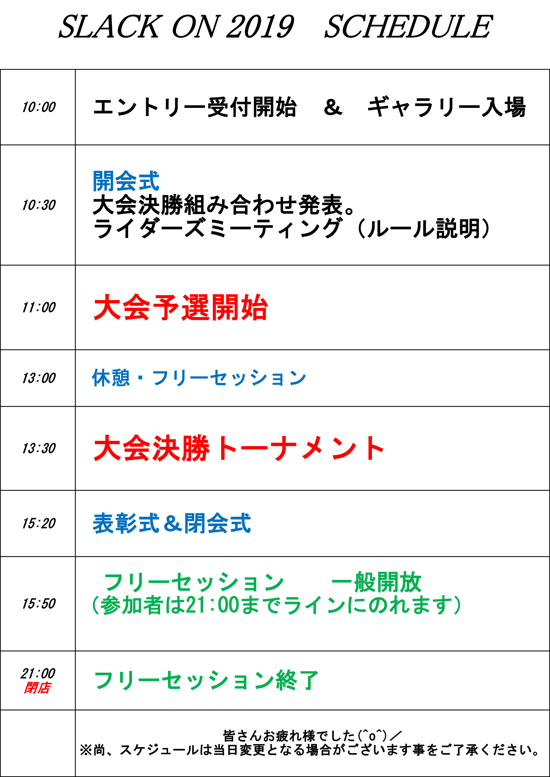SLACK ON 2020開催決定。お気軽にご参加ください。応援・見学は無料で入場できます。